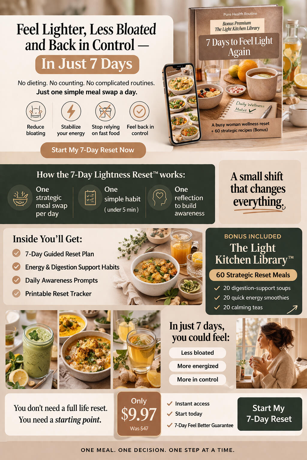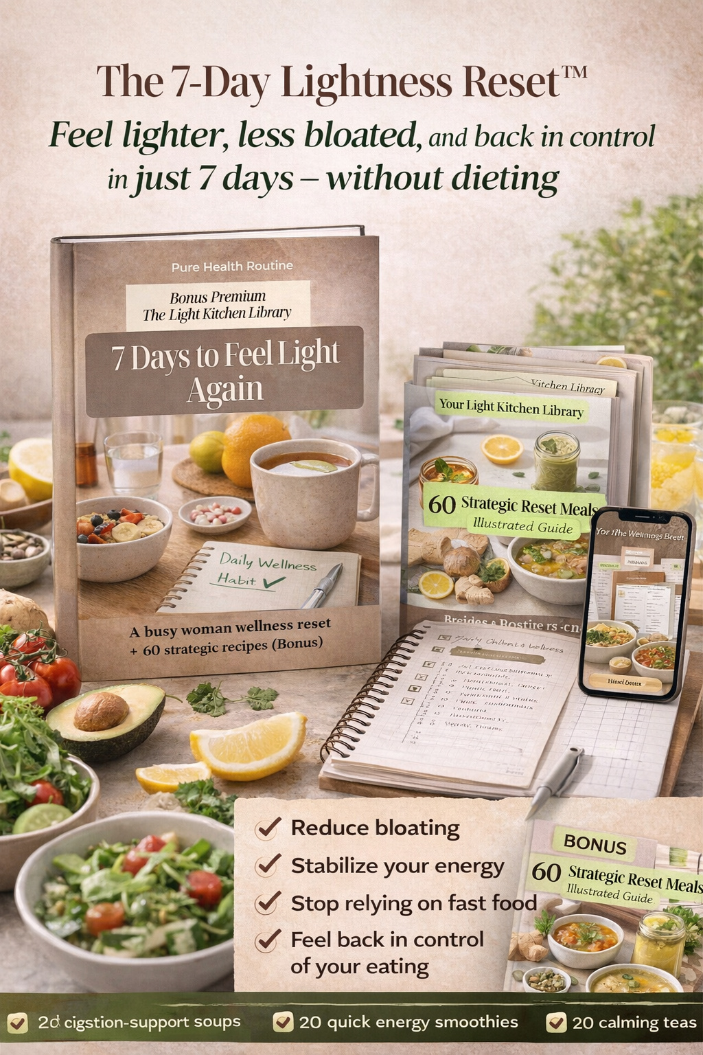 A simple system to help you feel lighter, reduce bloating and regain control of your routine.✔ 7-day guided plan